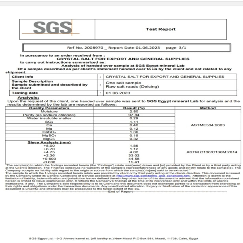 Salt Chemical Analysis fo...